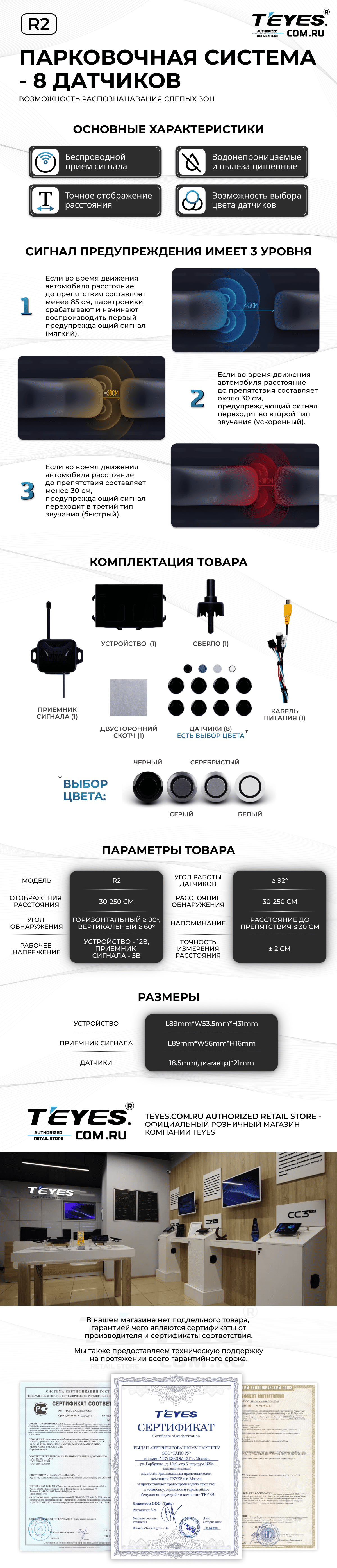 Передние и задние парктроники Teyes R2 для CC4 Pro / CC4 / CC4L / CC3 2K / CC3 / CC3L / CC2 Plus / SPRO Plus / TPRO2 / LUX ONE (Черные) 8-датчиков - купить всего за 21 900 руб. в интернет-магазине в Архангельске Teyes.com.ru. ✓ Самый лучший выбор мультимедиа ✓ Лучшая замена штатному ГУ ✓ Тел. +7 (800) 775-31-74