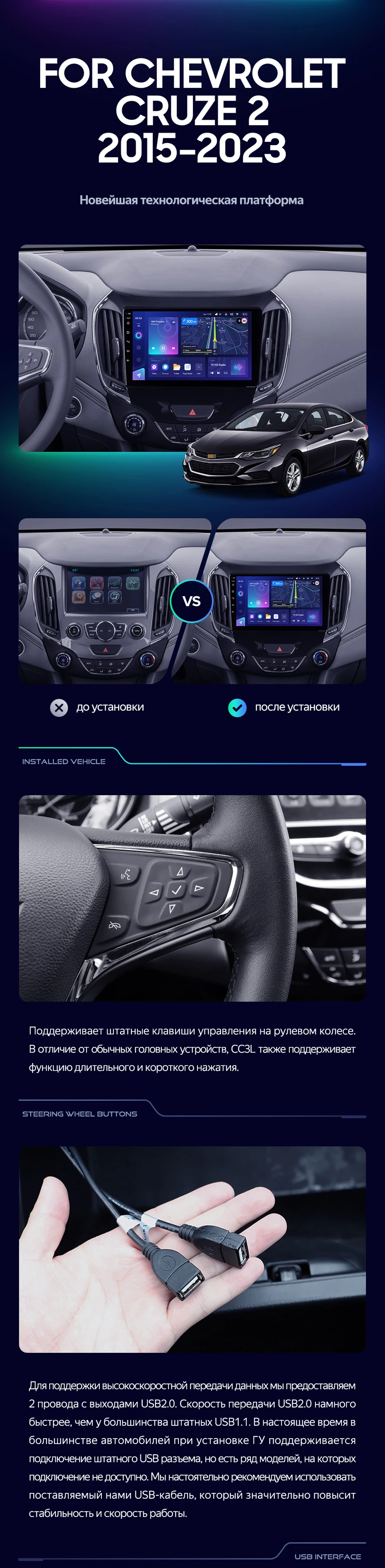 Переходная рамка Chevrolet Cruze 2 (2015-2023) (9") - купить всего за 4 200 руб. в интернет-магазине в Архангельске Teyes.com.ru. ✓ Самый лучший выбор мультимедиа ✓ Лучшая замена штатному ГУ ✓ Тел. +7 (800) 775-31-74