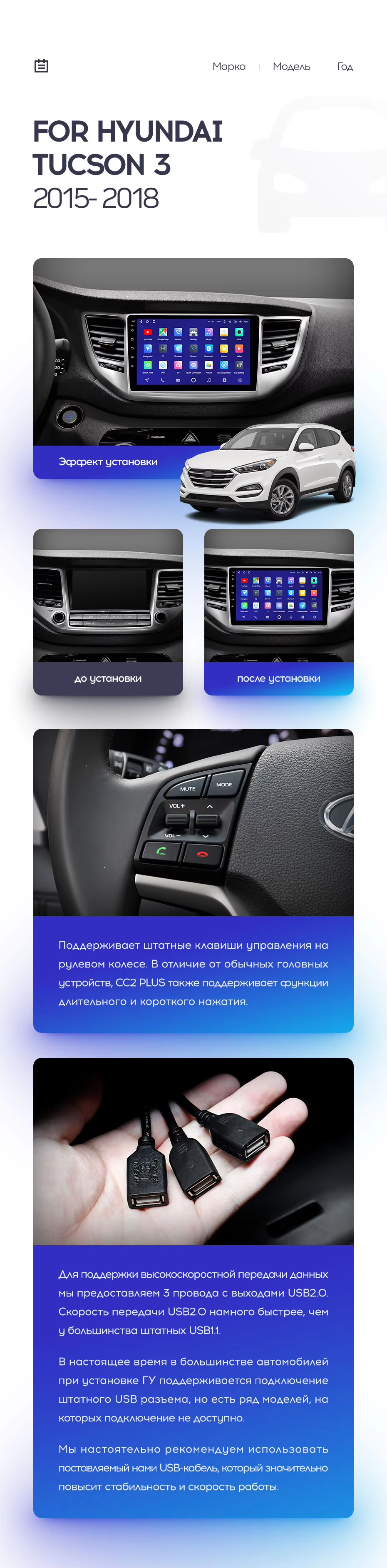 Штатная магнитола Teyes CC2 Plus 4/32 Hyundai Tucson 3 (2015-2018) Тип-A - купить всего за 33 800 руб. в интернет-магазине в Архангельске Teyes.com.ru. ✓ Самый лучший выбор мультимедиа ✓ Лучшая замена штатному ГУ ✓ Тел. +7 (800) 775-31-74