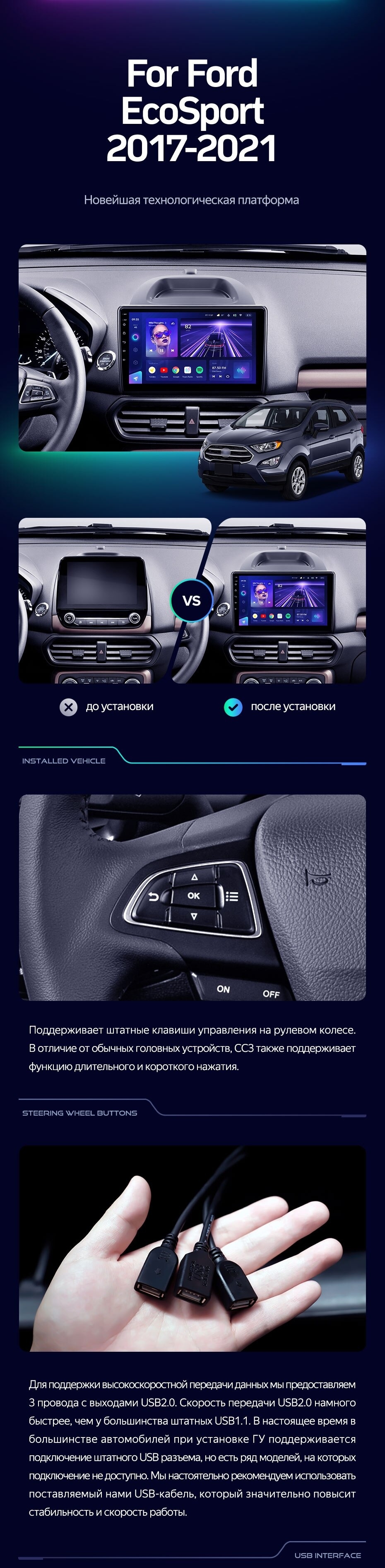 Штатная магнитола Teyes CC3 2K 4/32 Ford EcoSport (2017-2021) - купить всего за 39 450 руб. в интернет-магазине в Архангельске Teyes.com.ru. ✓ Самый лучший выбор мультимедиа ✓ Лучшая замена штатному ГУ ✓ Тел. +7 (800) 775-31-74