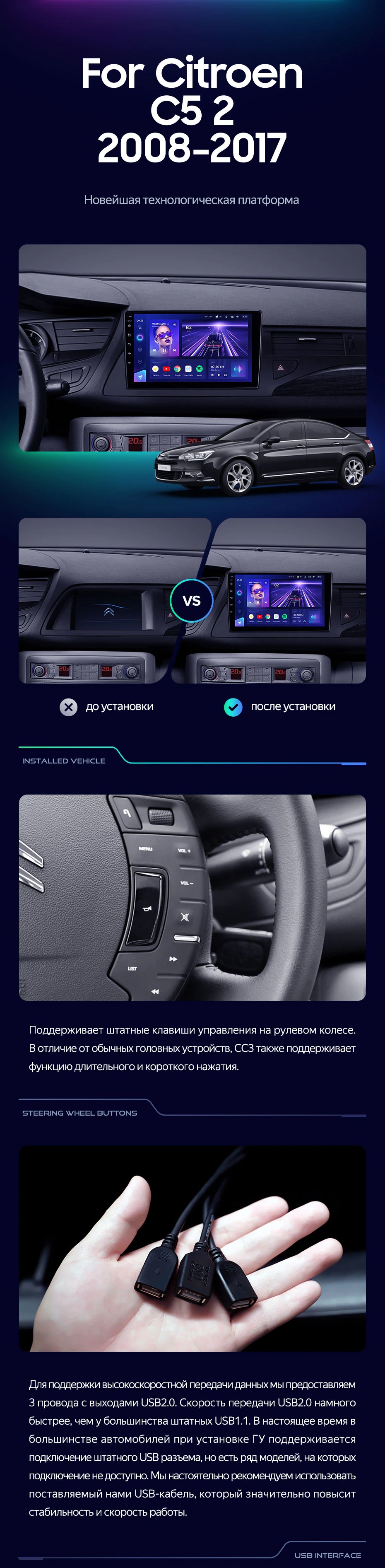 Штатная магнитола Teyes CC3 4/32 Citroen C5 2 (2008-2017) F1 - купить всего за 33 230 руб. в интернет-магазине в Архангельске Teyes.com.ru. ✓ Самый лучший выбор мультимедиа ✓ Лучшая замена штатному ГУ ✓ Тел. +7 (800) 775-31-74