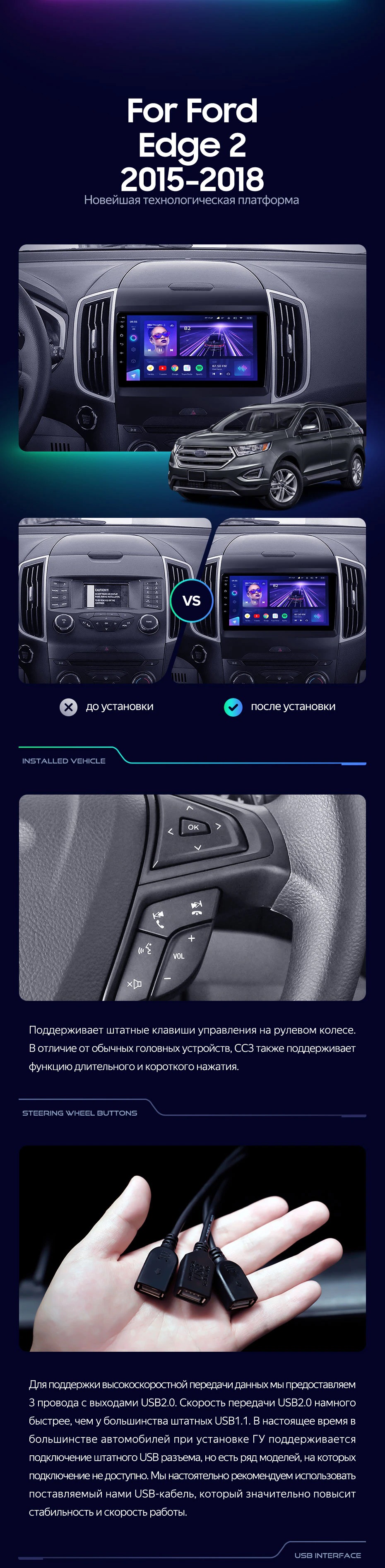 Штатная магнитола Teyes CC3 4/32 Ford Edge 2 (2015-2018) F1 - купить всего за 32 830 руб. в интернет-магазине в Архангельске Teyes.com.ru. ✓ Самый лучший выбор мультимедиа ✓ Лучшая замена штатному ГУ ✓ Тел. +7 (800) 775-31-74