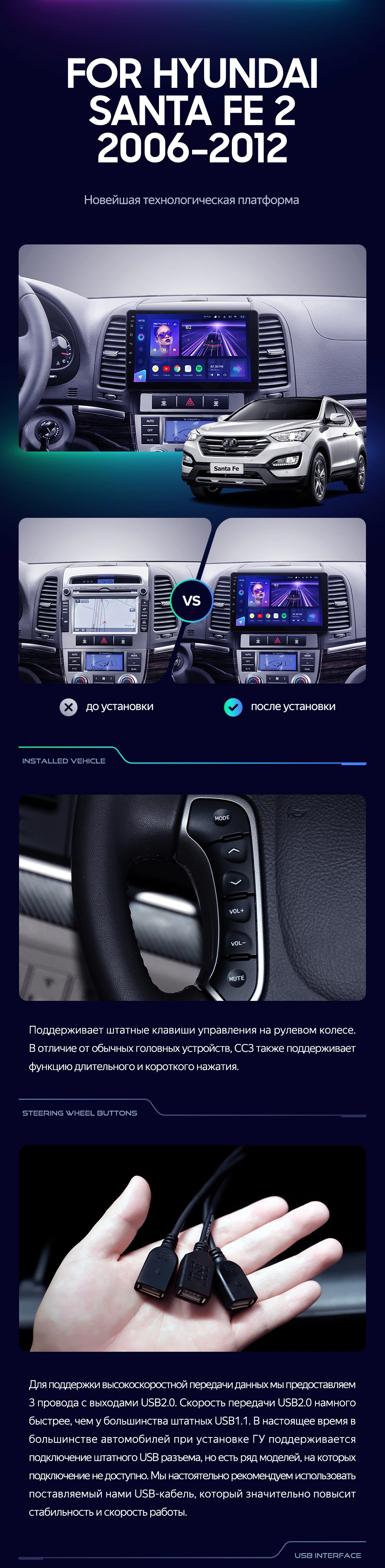 Штатная магнитола Teyes CC3 4/32 Hyundai Santa Fe 2 (2006-2012) - купить всего за 32 470 руб. в интернет-магазине в Архангельске Teyes.com.ru. ✓ Самый лучший выбор мультимедиа ✓ Лучшая замена штатному ГУ ✓ Тел. +7 (800) 775-31-74