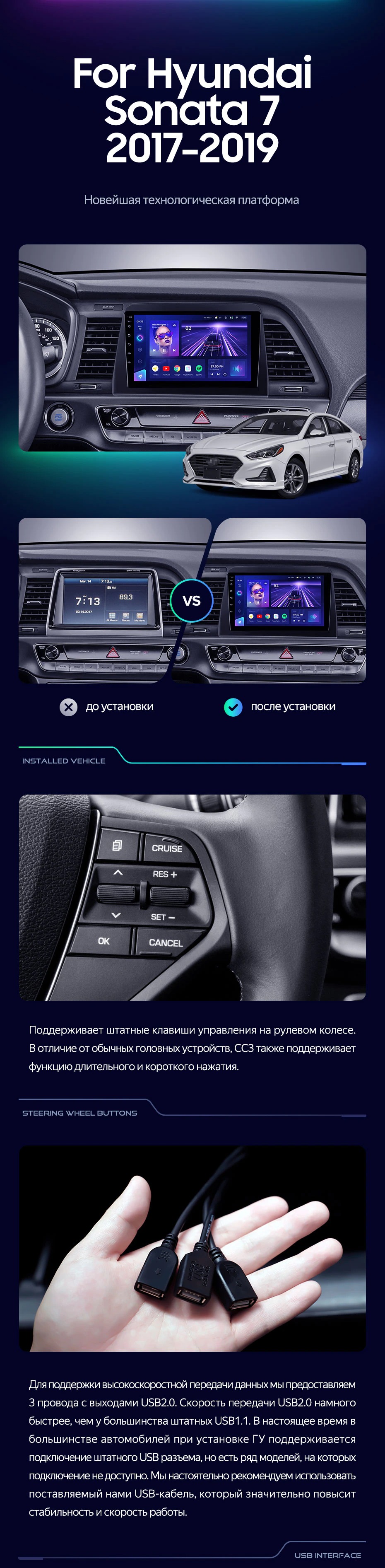 Штатная магнитола Teyes CC3 4/32 Hyundai Sonata 7 LF (2017-2019) - купить всего за 33 650 руб. в интернет-магазине в Архангельске Teyes.com.ru. ✓ Самый лучший выбор мультимедиа ✓ Лучшая замена штатному ГУ ✓ Тел. +7 (800) 775-31-74