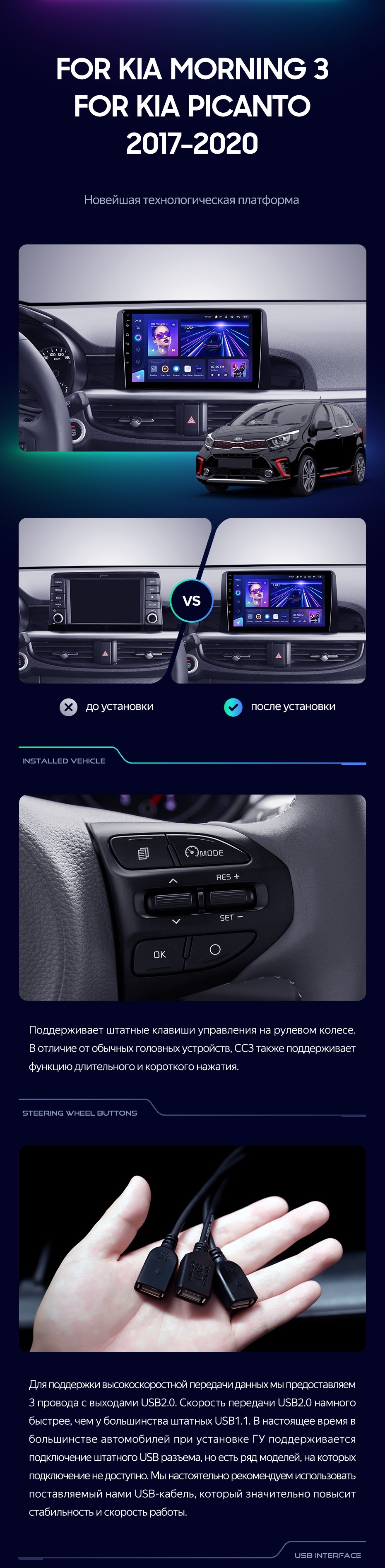 Штатная магнитола Teyes CC3 4/32 Kia Picanto (2017-2020) Тип-A - купить всего за 32 730 руб. в интернет-магазине в Архангельске Teyes.com.ru. ✓ Самый лучший выбор мультимедиа ✓ Лучшая замена штатному ГУ ✓ Тел. +7 (800) 775-31-74