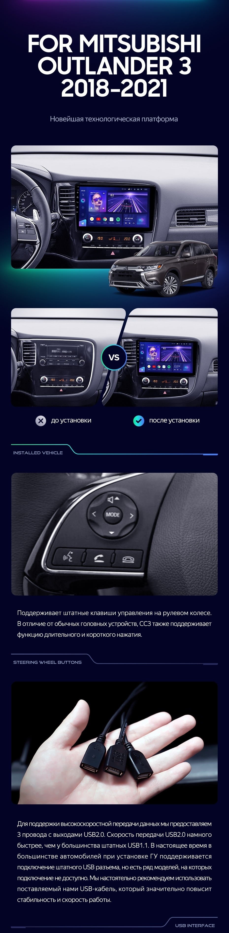 Штатная магнитола Teyes CC3 4/32 Mitsubishi Outlander 3 (2018-2021) - купить всего за 33 830 руб. в интернет-магазине в Архангельске Teyes.com.ru. ✓ Самый лучший выбор мультимедиа ✓ Лучшая замена штатному ГУ ✓ Тел. +7 (800) 775-31-74