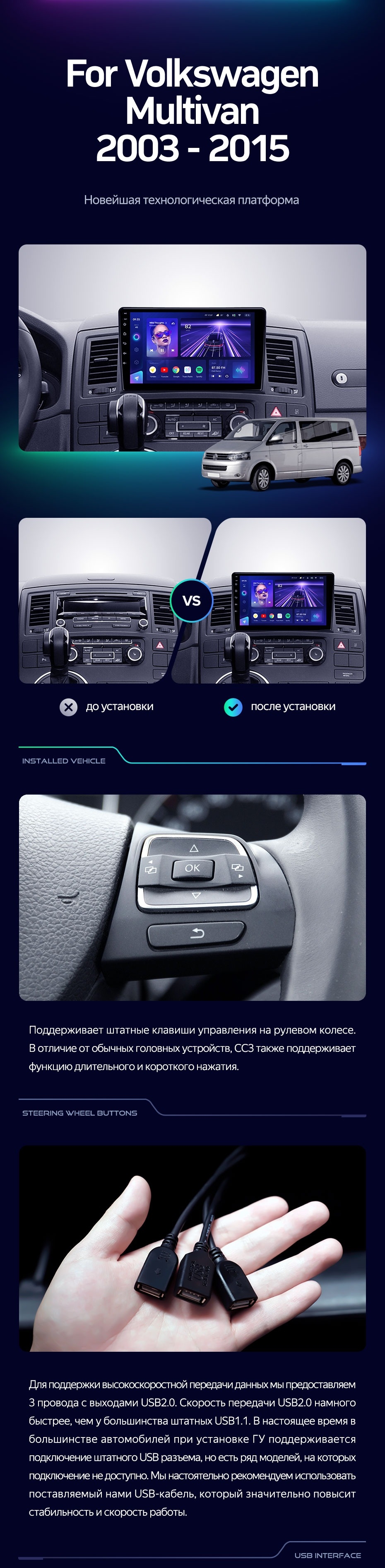 Штатная магнитола Teyes CC3 4/32 Volkswagen Multivan T5 (2003-2015) - купить всего за 33 220 руб. в интернет-магазине в Архангельске Teyes.com.ru. ✓ Самый лучший выбор мультимедиа ✓ Лучшая замена штатному ГУ ✓ Тел. +7 (800) 775-31-74