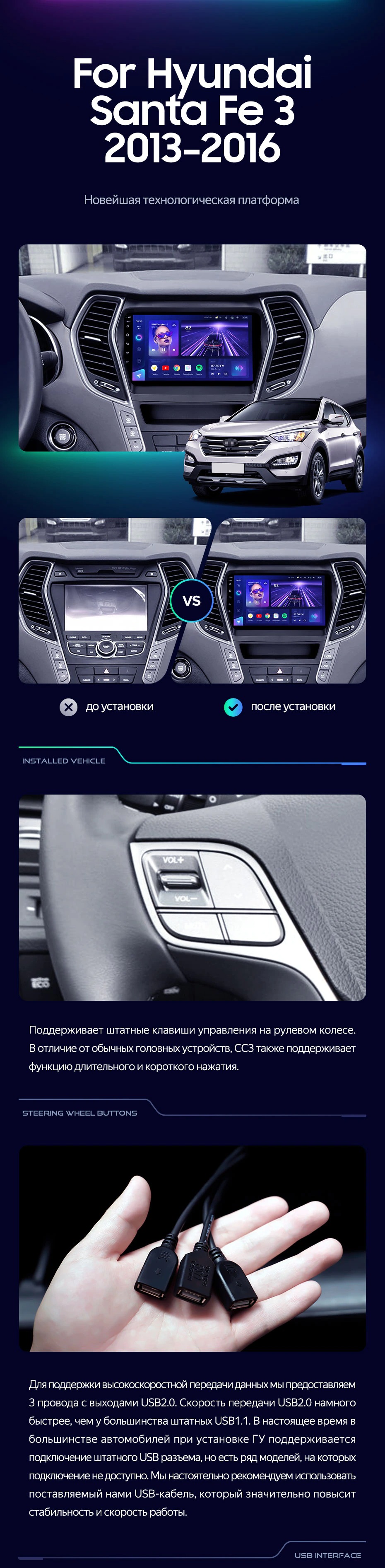 Штатная магнитола Teyes CC3L 4/32 Hyundai Santa Fe 3 (2013-2016) Тип-A - купить всего за 28 000 руб. в интернет-магазине в Архангельске Teyes.com.ru. ✓ Самый лучший выбор мультимедиа ✓ Лучшая замена штатному ГУ ✓ Тел. +7 (800) 775-31-74
