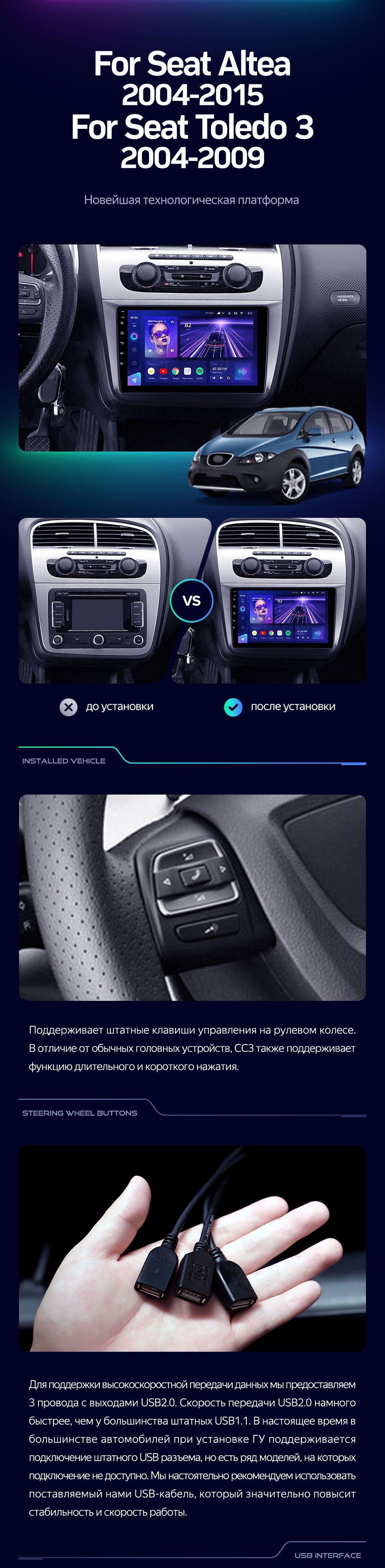 Штатная магнитола Teyes CC3L 4/32 Seat Altea 5P (2004-2015) - купить всего за 29 100 руб. в интернет-магазине в Архангельске Teyes.com.ru. ✓ Самый лучший выбор мультимедиа ✓ Лучшая замена штатному ГУ ✓ Тел. +7 (800) 775-31-74
