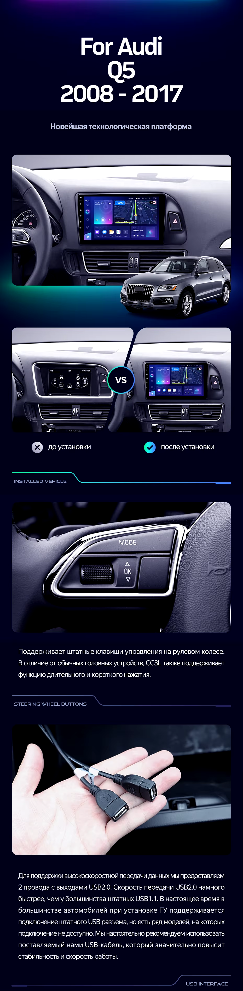 Штатная магнитола Teyes CC3L 4/64 Audi Q5 8R (2008-2017) Тип-B - купить всего за 35 400 руб. в интернет-магазине в Архангельске Teyes.com.ru. ✓ Самый лучший выбор мультимедиа ✓ Лучшая замена штатному ГУ ✓ Тел. +7 (800) 775-31-74