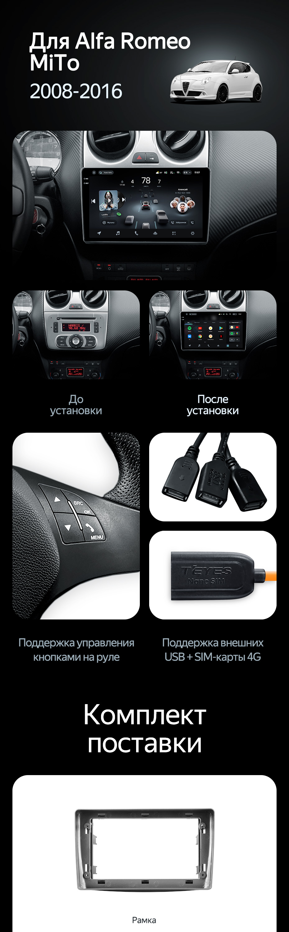 Штатная магнитола Teyes CC4 6/64 Alfa Romeo MiTo 955 (2008-2016) - купить всего за 46 500 руб. в интернет-магазине в Архангельске Teyes.com.ru. ✓ Самый лучший выбор мультимедиа ✓ Лучшая замена штатному ГУ ✓ Тел. +7 (800) 775-31-74