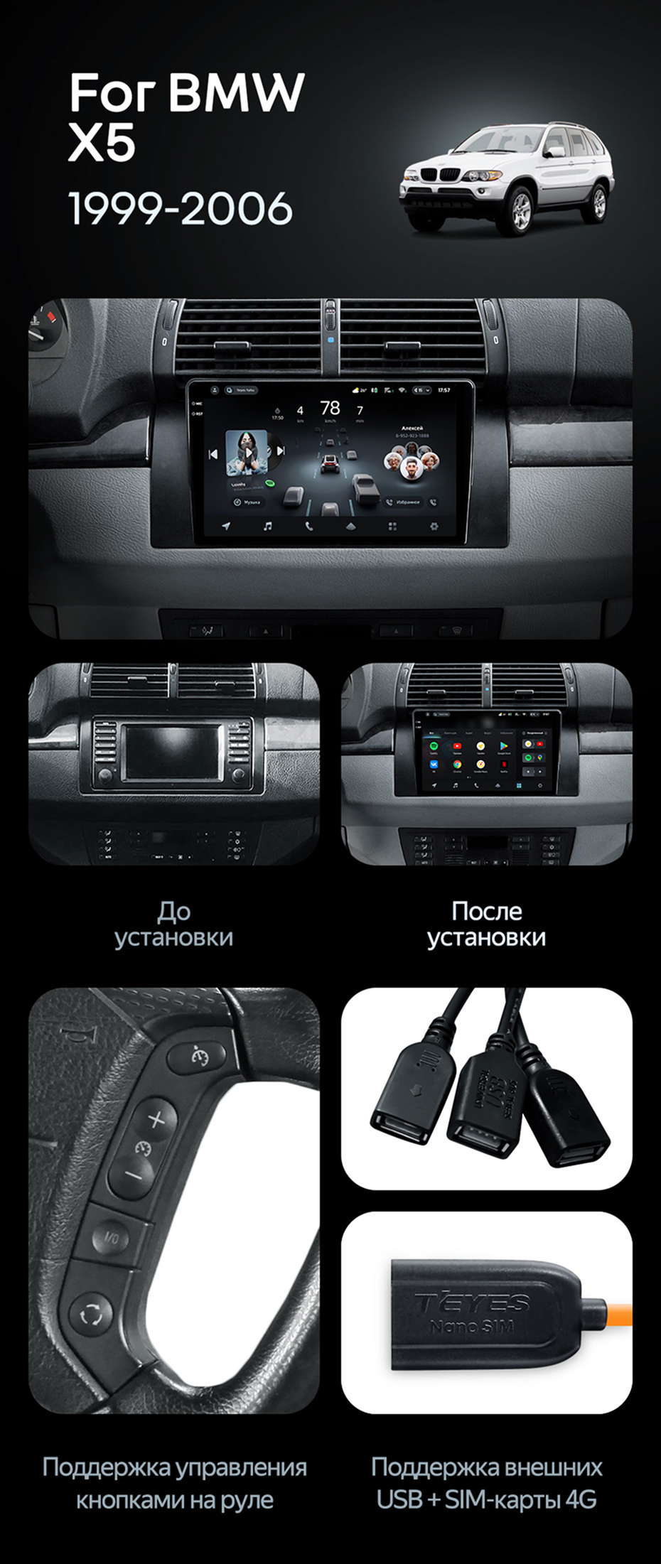 Штатная магнитола Teyes CC4 6/64 BMW X5 E39 E53 (1999-2006) - купить всего за 44 700 руб. в интернет-магазине в Архангельске Teyes.com.ru. ✓ Самый лучший выбор мультимедиа ✓ Лучшая замена штатному ГУ ✓ Тел. +7 (800) 775-31-74