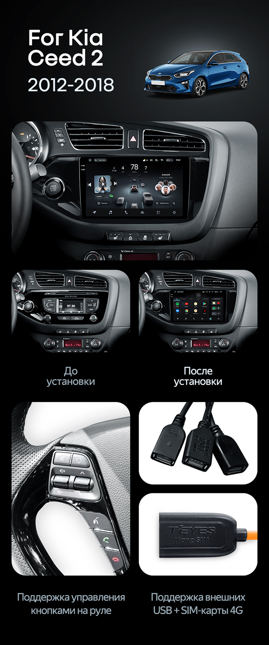 Штатная магнитола Teyes CC4 6/64 Kia Ceed 2 JD (2012-2018) - купить всего за 43 920 руб. в интернет-магазине в Архангельске Teyes.com.ru. ✓ Самый лучший выбор мультимедиа ✓ Лучшая замена штатному ГУ ✓ Тел. +7 (800) 775-31-74