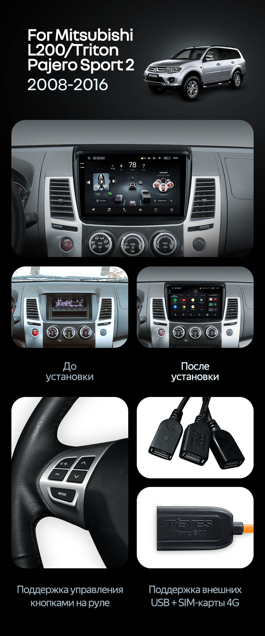 Штатная магнитола Teyes CC4 6/64 Mitsubishi L200 (2008-2016) - купить всего за 43 550 руб. в интернет-магазине в Архангельске Teyes.com.ru. ✓ Самый лучший выбор мультимедиа ✓ Лучшая замена штатному ГУ ✓ Тел. +7 (800) 775-31-74