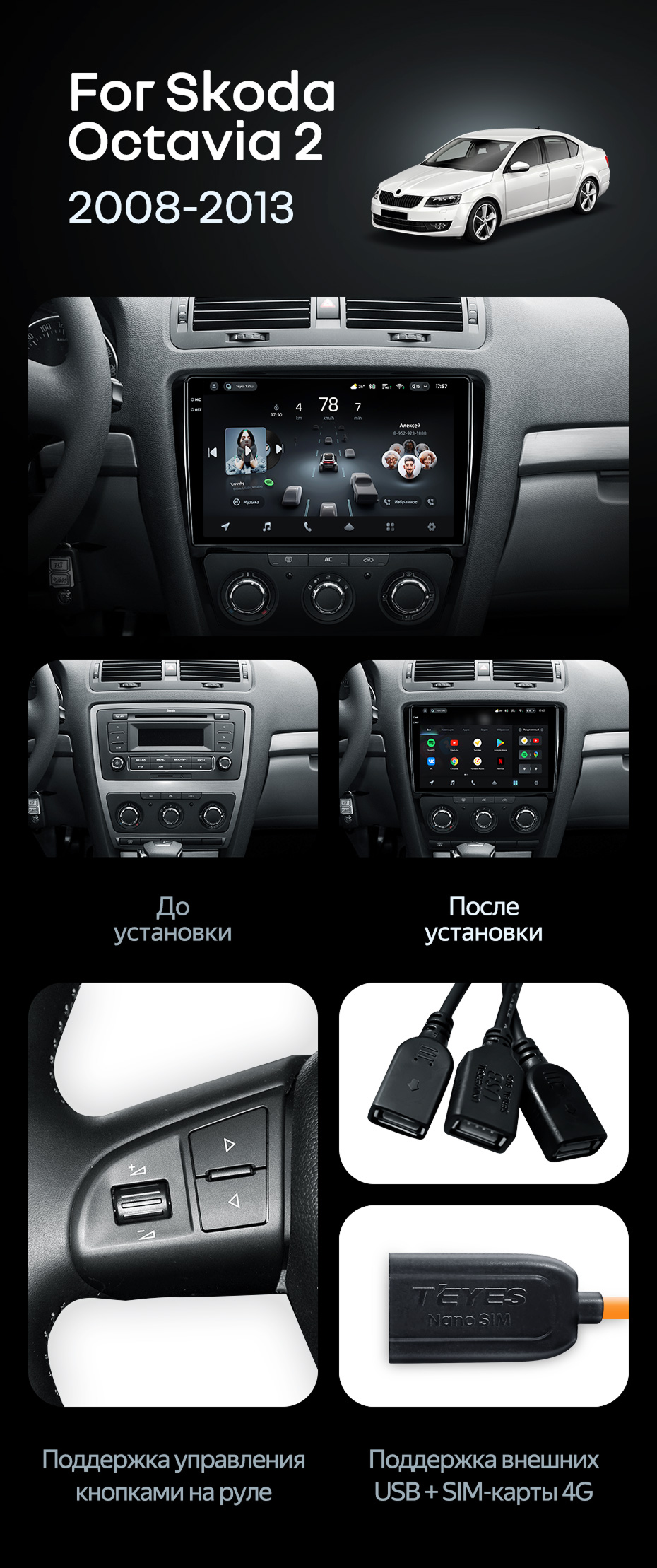 Штатная магнитола Teyes CC4 6/64 Skoda Octavia 2 A5 (2008-2013) - купить всего за 48 070 руб. в интернет-магазине в Архангельске Teyes.com.ru. ✓ Самый лучший выбор мультимедиа ✓ Лучшая замена штатному ГУ ✓ Тел. +7 (800) 775-31-74