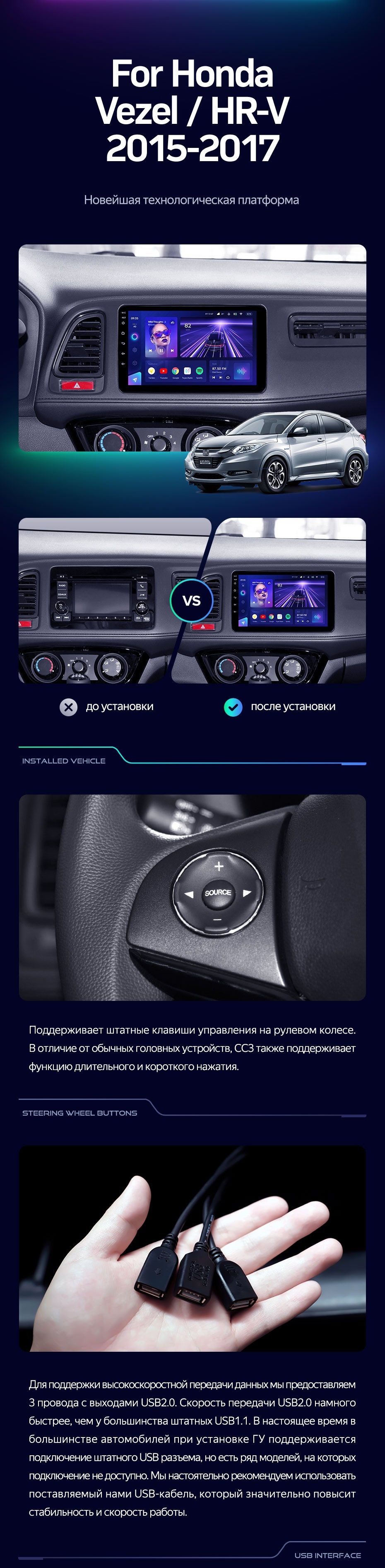 Штатная магнитола Teyes CC4 8/128 Honda HR-V (2015-2018) - купить всего за 48 500 руб. в интернет-магазине в Архангельске Teyes.com.ru. ✓ Самый лучший выбор мультимедиа ✓ Лучшая замена штатному ГУ ✓ Тел. +7 (800) 775-31-74