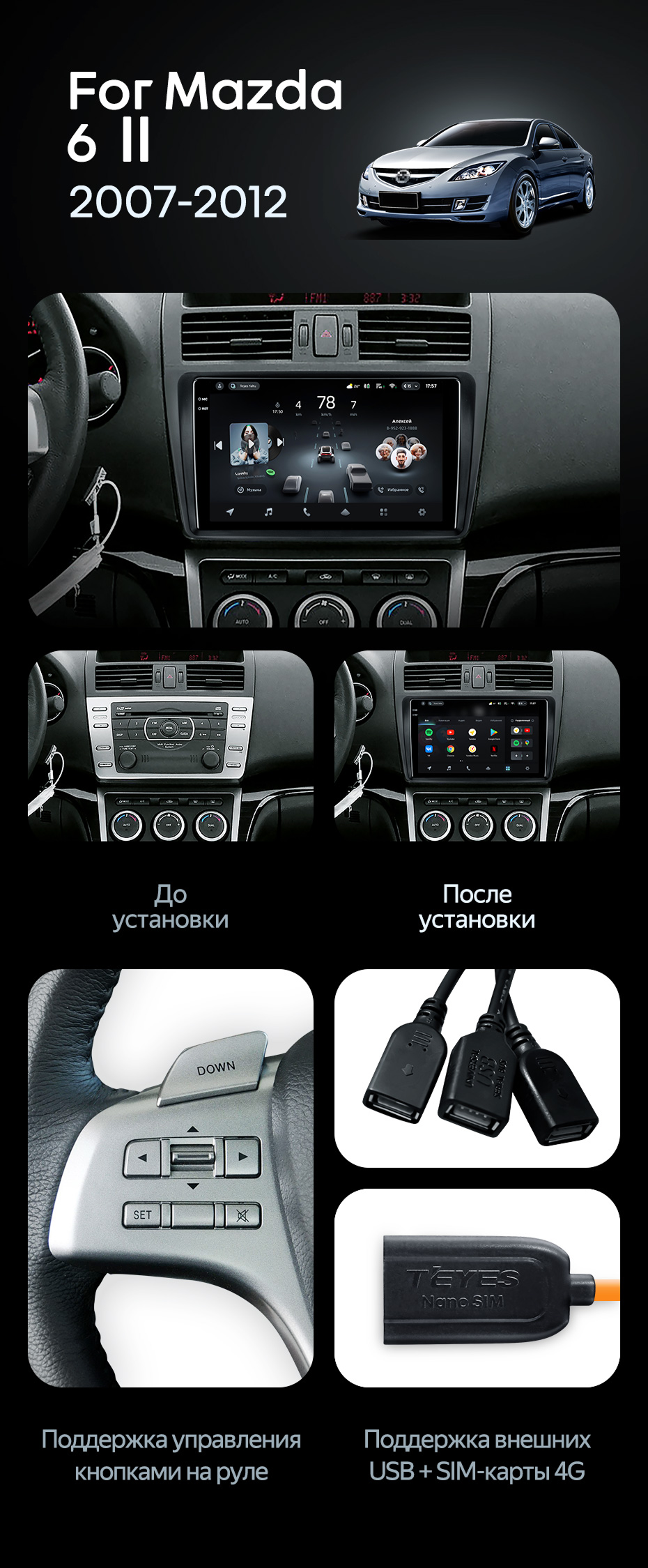 Штатная магнитола Teyes CC4 Pro 12/256 Mazda 6 2 GH (2007-2012) - купить всего за 69 390 руб. в интернет-магазине в Архангельске Teyes.com.ru. ✓ Самый лучший выбор мультимедиа ✓ Лучшая замена штатному ГУ ✓ Тел. +7 (800) 775-31-74