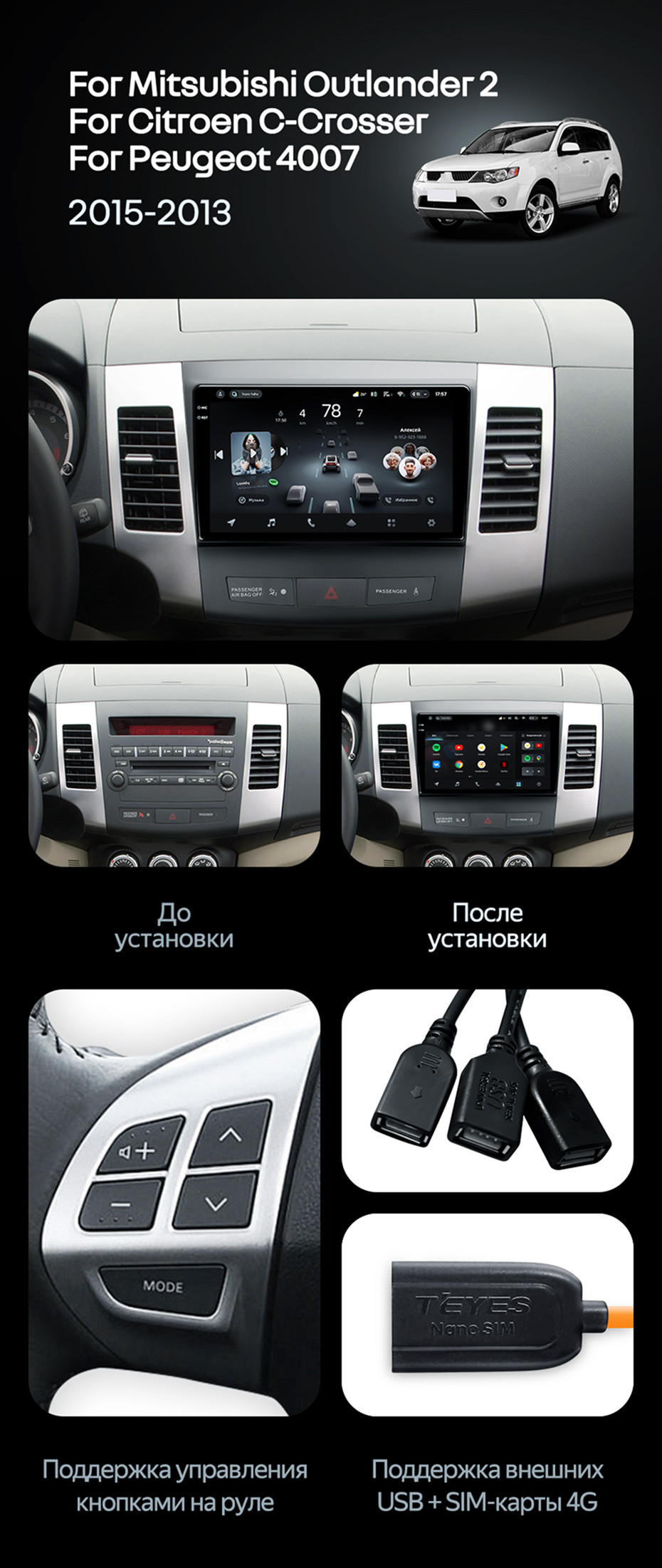 Штатная магнитола Teyes CC4 Pro 12/256 Mitsubishi Outlander 2 (2005-2011) Тип-A - купить всего за 68 070 руб. в интернет-магазине в Архангельске Teyes.com.ru. ✓ Самый лучший выбор мультимедиа ✓ Лучшая замена штатному ГУ ✓ Тел. +7 (800) 775-31-74