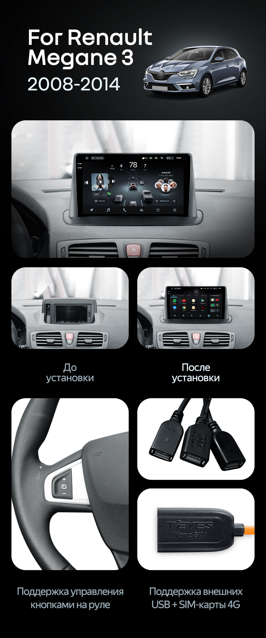 Штатная магнитола Teyes CC4 Pro 12/256 Renault Megane 3 (2008-2014) - купить всего за 70 000 руб. в интернет-магазине в Архангельске Teyes.com.ru. ✓ Самый лучший выбор мультимедиа ✓ Лучшая замена штатному ГУ ✓ Тел. +7 (800) 775-31-74