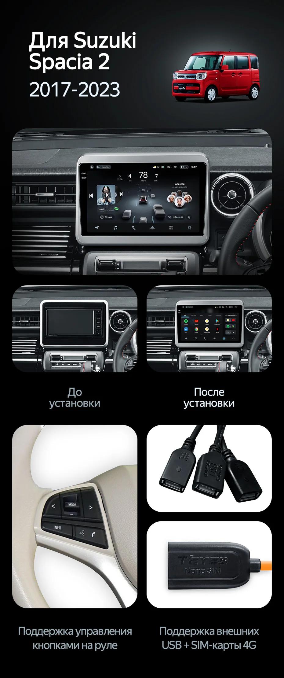 Штатная магнитола Teyes CC4 Pro 12/256 Suzuki Spacia 2 (2017-2023) - купить всего за 68 500 руб. в интернет-магазине в Архангельске Teyes.com.ru. ✓ Самый лучший выбор мультимедиа ✓ Лучшая замена штатному ГУ ✓ Тел. +7 (800) 775-31-74