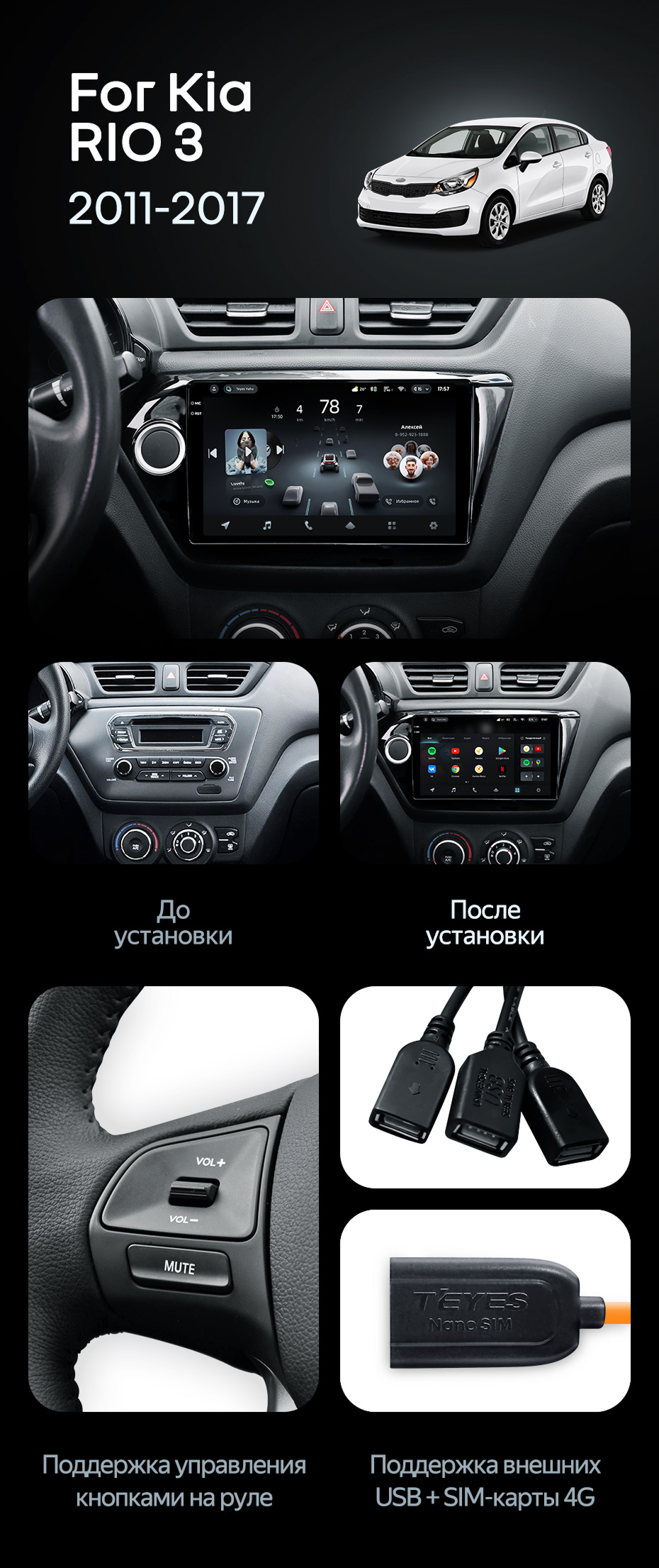 Штатная магнитола Teyes CC4 Pro 8/128 Kia Rio 3 (2011-2017) - купить всего за 57 810 руб. в интернет-магазине в Архангельске Teyes.com.ru. ✓ Самый лучший выбор мультимедиа ✓ Лучшая замена штатному ГУ ✓ Тел. +7 (800) 775-31-74