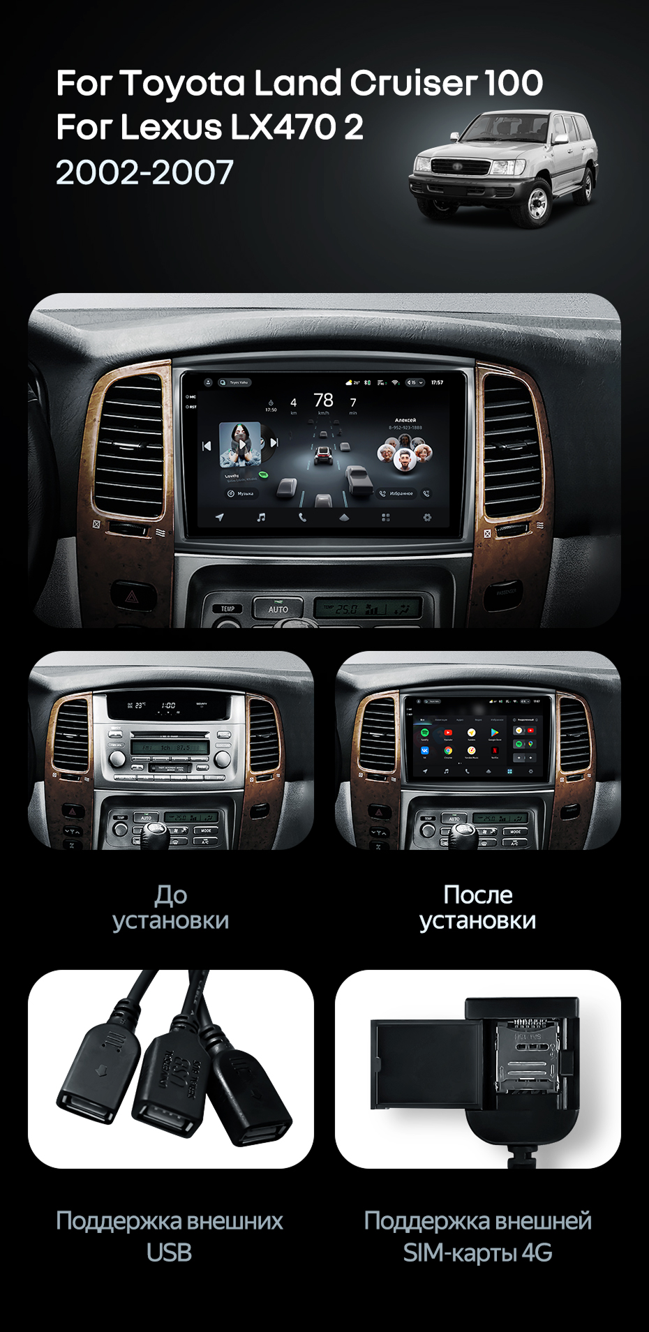 Штатная магнитола Teyes CC4 Pro 8/128 Lexus LX470 J100 2 (2002-2007) Тип-C - купить всего за 61 320 руб. в интернет-магазине в Архангельске Teyes.com.ru. ✓ Самый лучший выбор мультимедиа ✓ Лучшая замена штатному ГУ ✓ Тел. +7 (800) 775-31-74