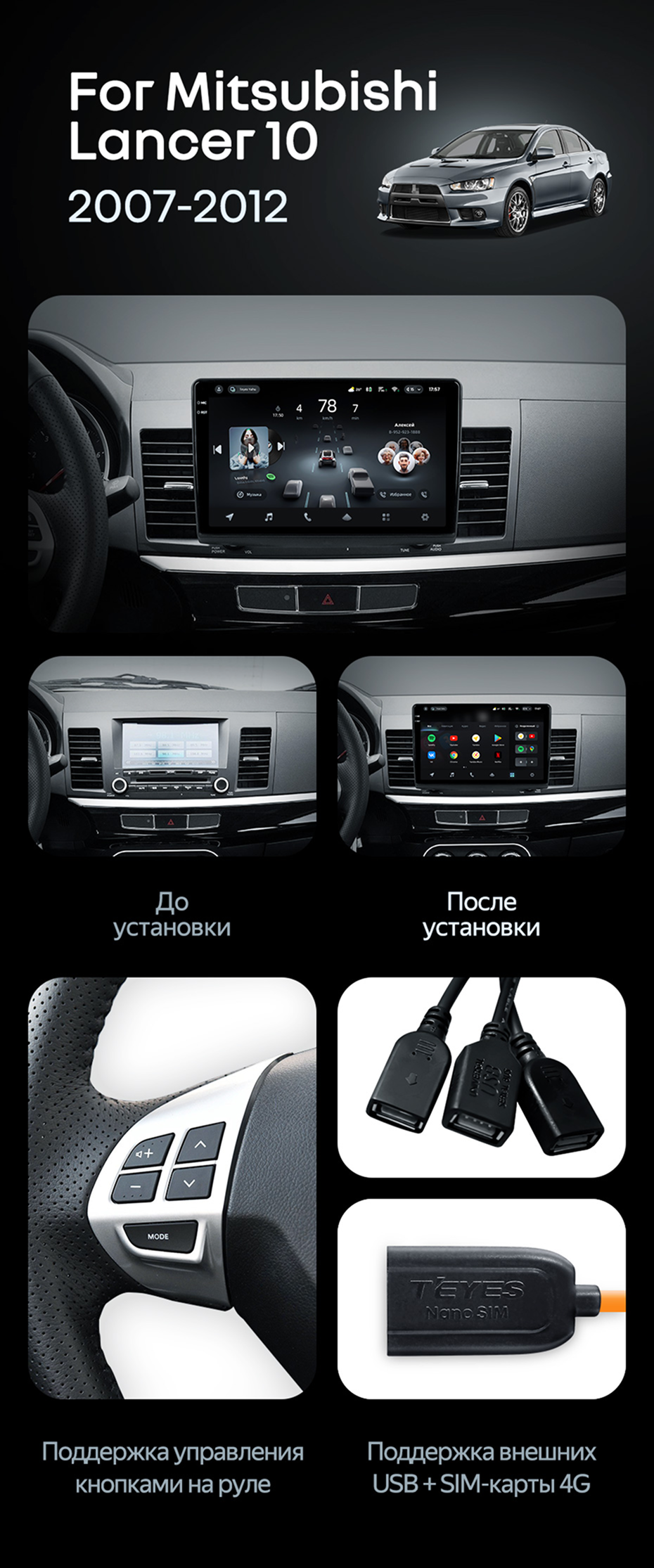 Штатная магнитола Teyes CC4 Pro 8/128 Mitsubishi Lancer 10 CY (2007-2012) Тип-A - купить всего за 57 960 руб. в интернет-магазине в Архангельске Teyes.com.ru. ✓ Самый лучший выбор мультимедиа ✓ Лучшая замена штатному ГУ ✓ Тел. +7 (800) 775-31-74