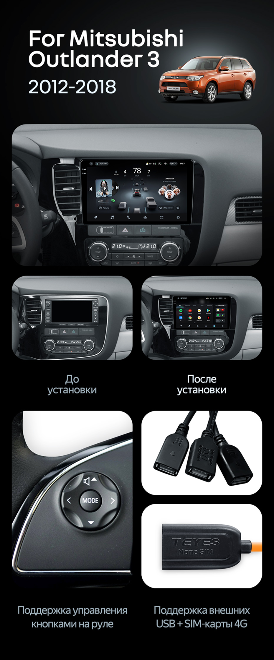 Штатная магнитола Teyes CC4 Pro 8/128 Mitsubishi Outlander 3 (2012-2018) Тип-A - купить всего за 58 580 руб. в интернет-магазине в Архангельске Teyes.com.ru. ✓ Самый лучший выбор мультимедиа ✓ Лучшая замена штатному ГУ ✓ Тел. +7 (800) 775-31-74