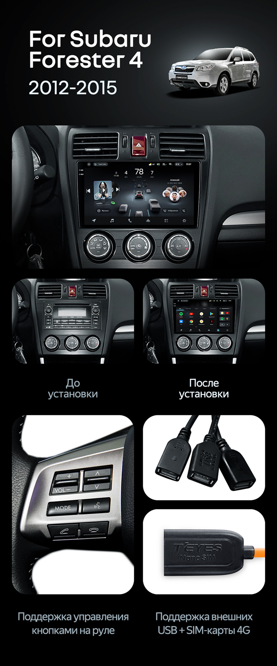 Штатная магнитола Teyes CC4 Pro 8/128 Subaru Forester 4 SJ (2012-2015) Тип-A - купить всего за 58 200 руб. в интернет-магазине в Архангельске Teyes.com.ru. ✓ Самый лучший выбор мультимедиа ✓ Лучшая замена штатному ГУ ✓ Тел. +7 (800) 775-31-74