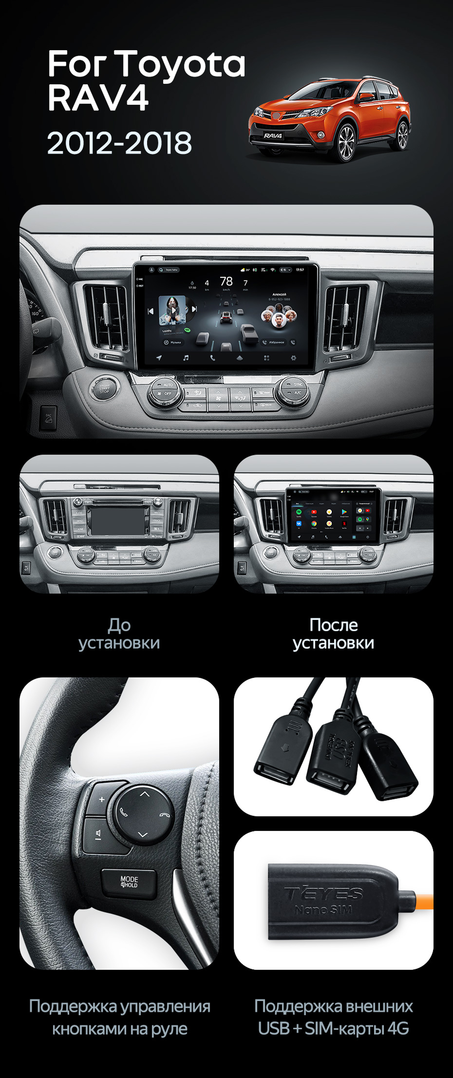 Штатная магнитола Teyes CC4 Pro 8/128 Toyota RAV4 (2012-2018) - купить всего за 58 740 руб. в интернет-магазине в Архангельске Teyes.com.ru. ✓ Самый лучший выбор мультимедиа ✓ Лучшая замена штатному ГУ ✓ Тел. +7 (800) 775-31-74