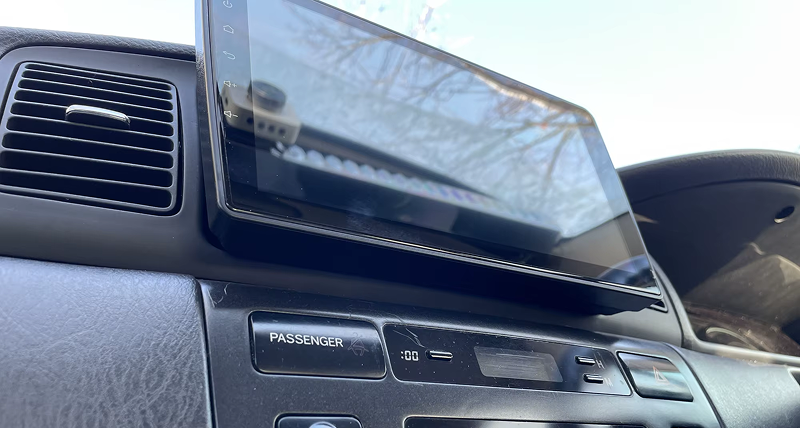 Защитное стекло 2,5D имеет слегка скругленные грани. Эта особенность делает его практически незаметным в районе краев экрана магнитолы, где он ограничен рамками корпуса.