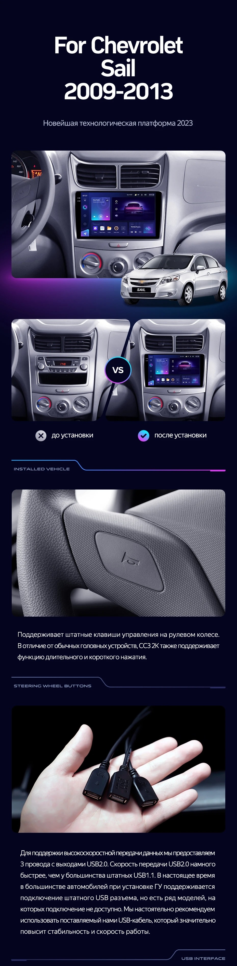 Полный комплект установки магнитолы Teyes с рамкой и проводкой можно выбрать в каталоге штатных магнитол Chevrolet Sail (2009-2013).