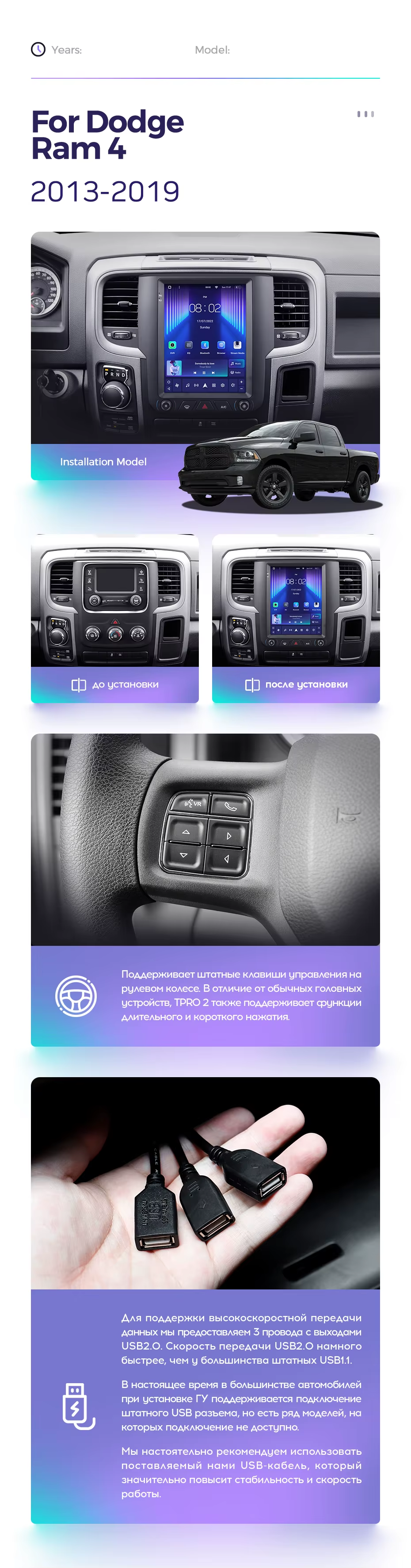 Полный комплект установки магнитолы Teyes с рамкой и проводкой можно выбрать в каталоге штатных магнитол Dodge Ram 4 IV DJ DS (2013-2019).